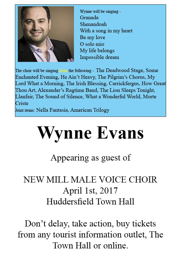 New Mill MVC starts the concert season with our “Swing into Spring” Concert at St John’s Church Upperthong on Saturday 7th May at 7.30pm